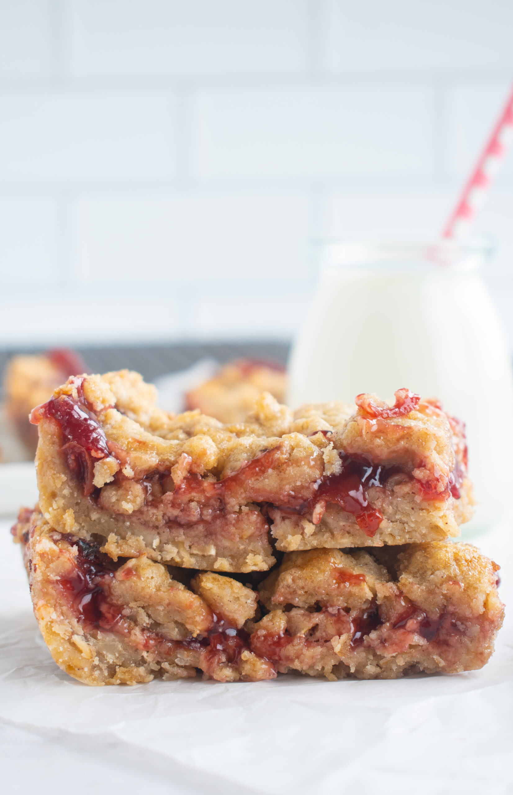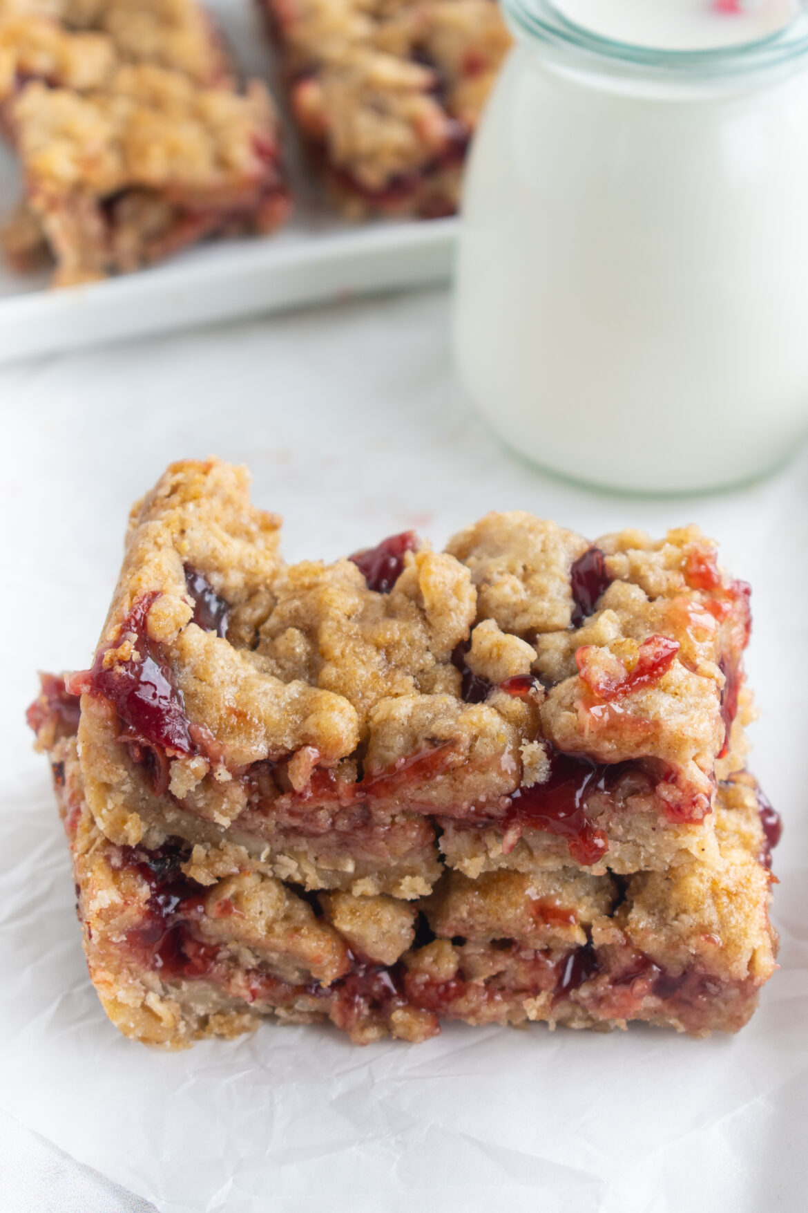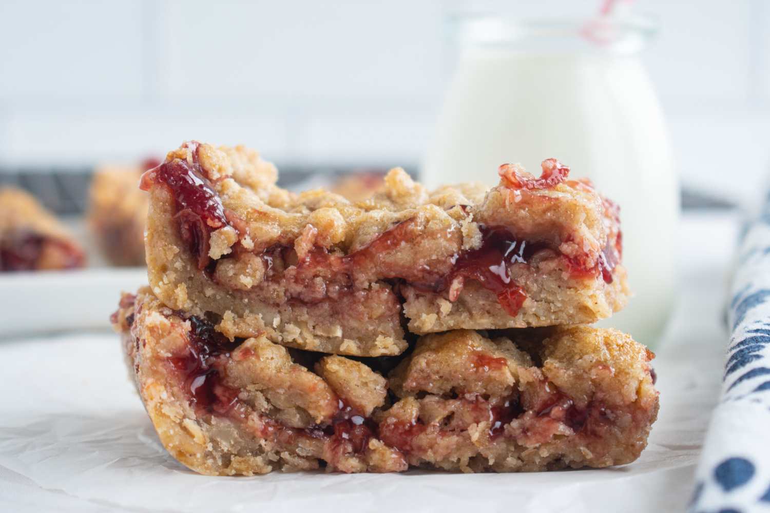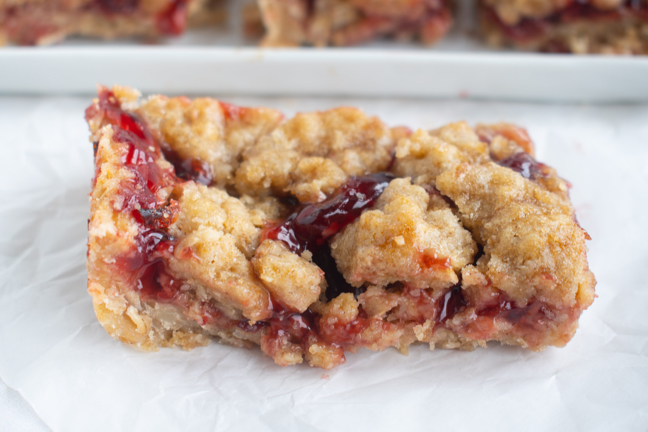 The rich cherry filling and old-fashioned oats make these bars feel like a slice of cherry pie, but no fork is required! The prep time is super quick, and you can take a pie bar out of the fridge, one by one, all week for a delicious treat! These taste great with a spoonful of ice cream on top. You will love the jammy cherry filling in these bars.