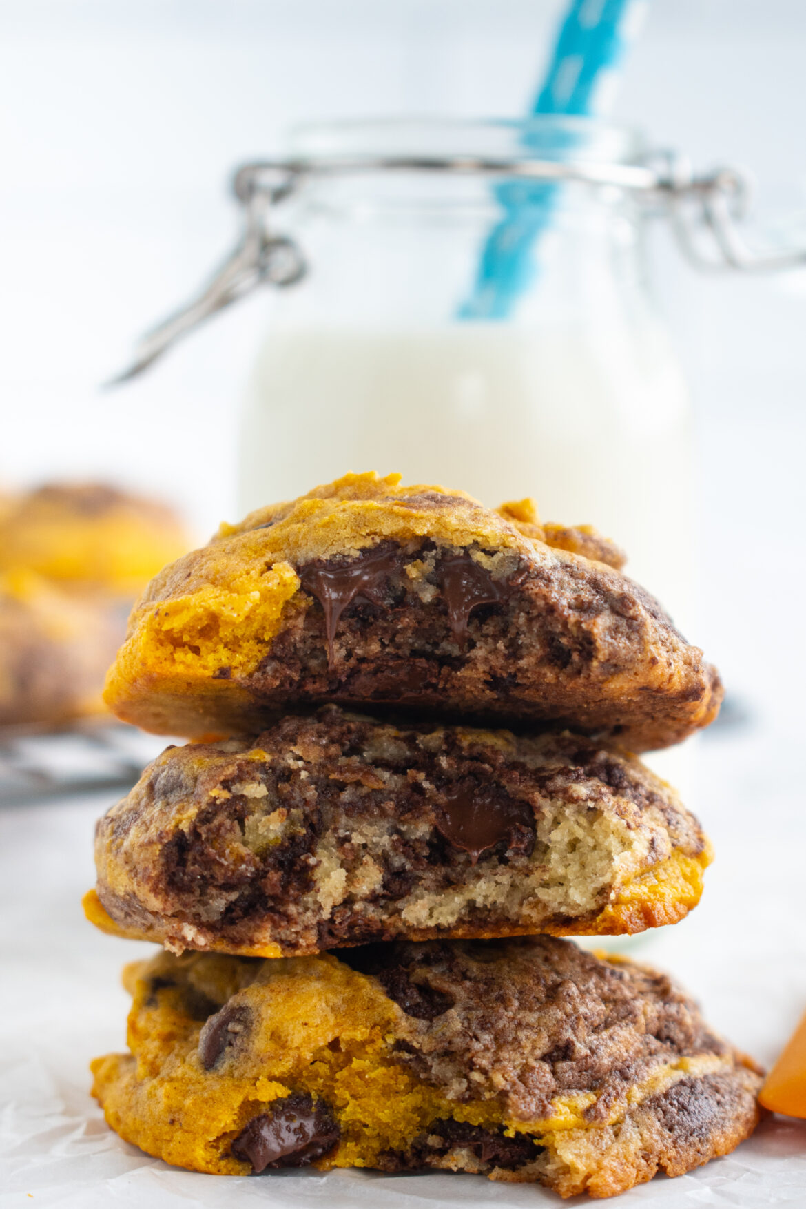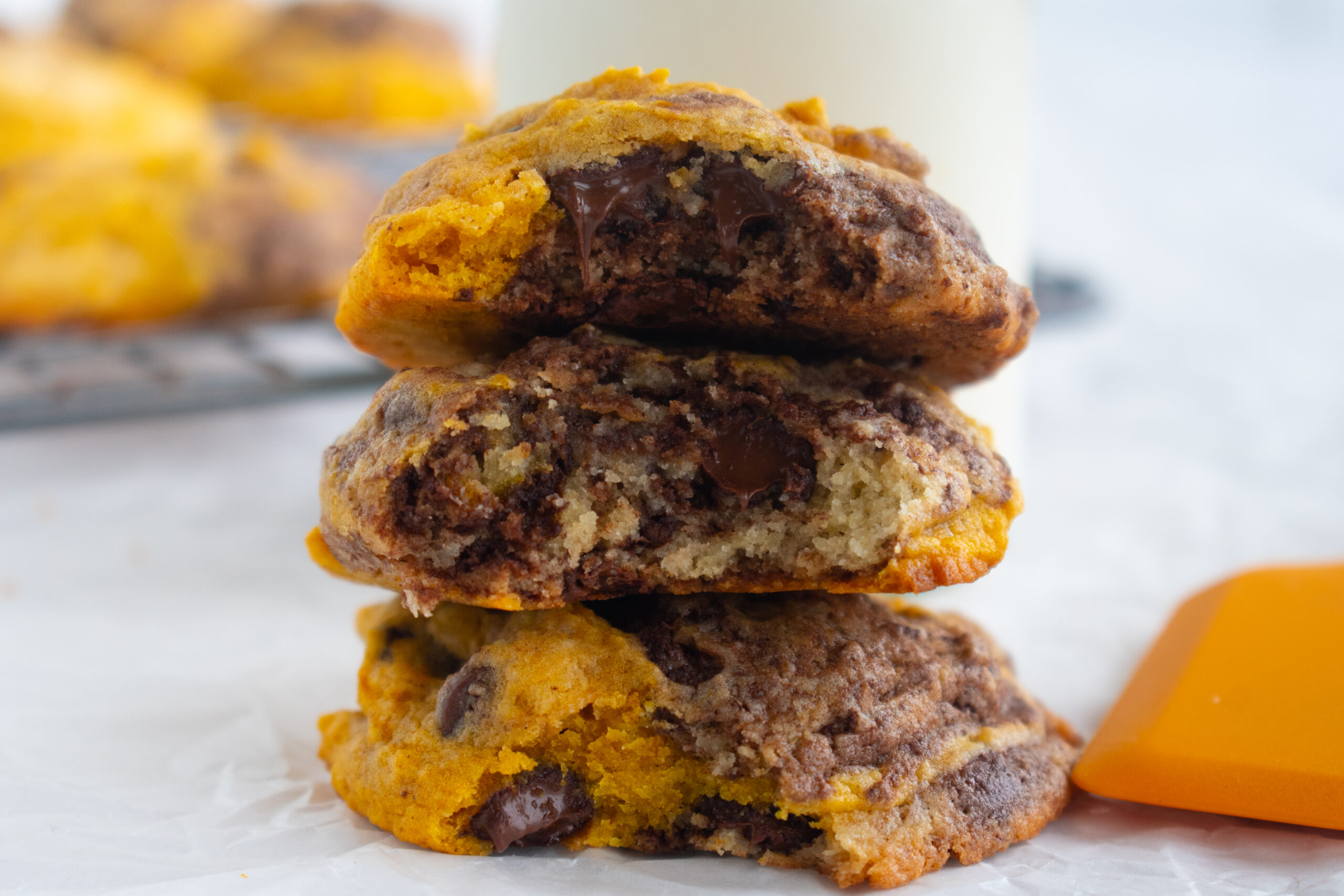 Fall is for staying cozy, and it’s the perfect time to bake a new pumpkin spice-flavored cookie recipe. These marble pumpkin chocolate chip cookies are the perfect treat to make this fall! You’ll love how the melty chocolate chips and chocolate cookie dough pair with the pumpkin! These cookies have a fantastic flavor and texture!