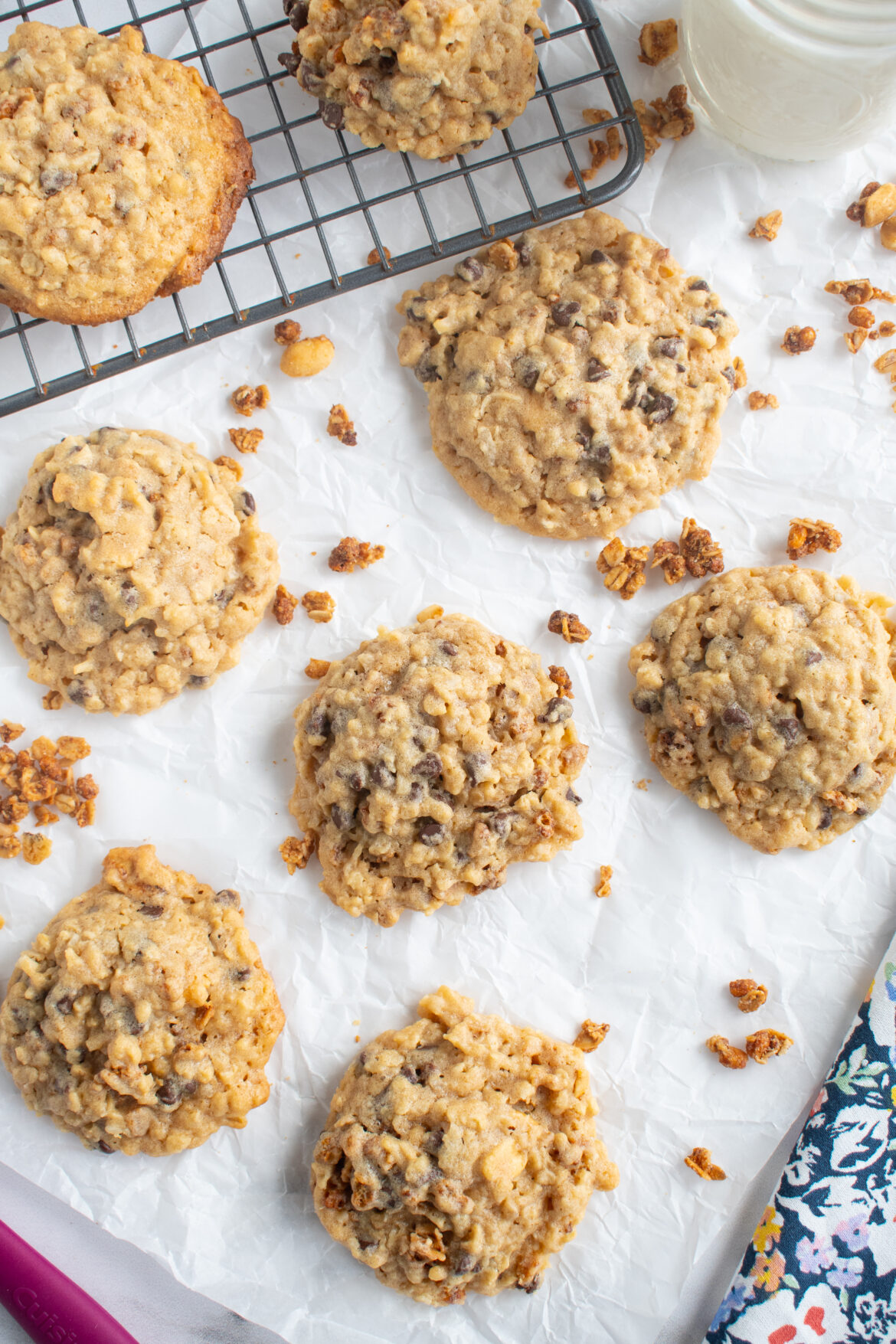 Tip: These cookies bake up slightly crisp around the edges with a chewy center. For extra crunch, sprinkle a few more pieces of granola on top before baking.