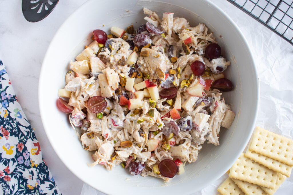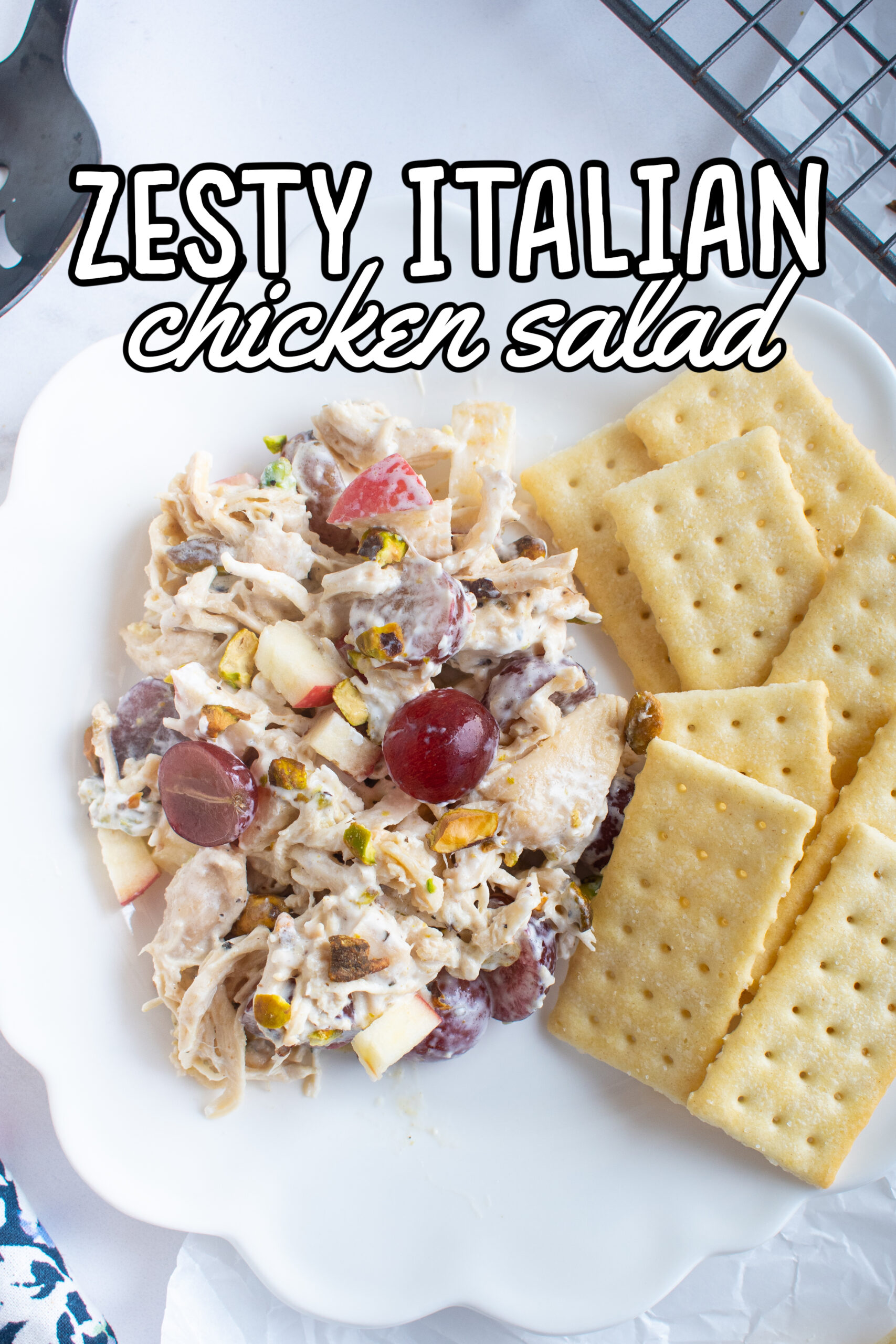 This salad tastes fantastic as a sandwich, on crackers, or served over romaine lettuce, Spring Mix, or other crisp greens. This chicken salad is an upgrade with this Italian-inspired version made with zesty chicken, crisp fruit, and crunchy pistachios.