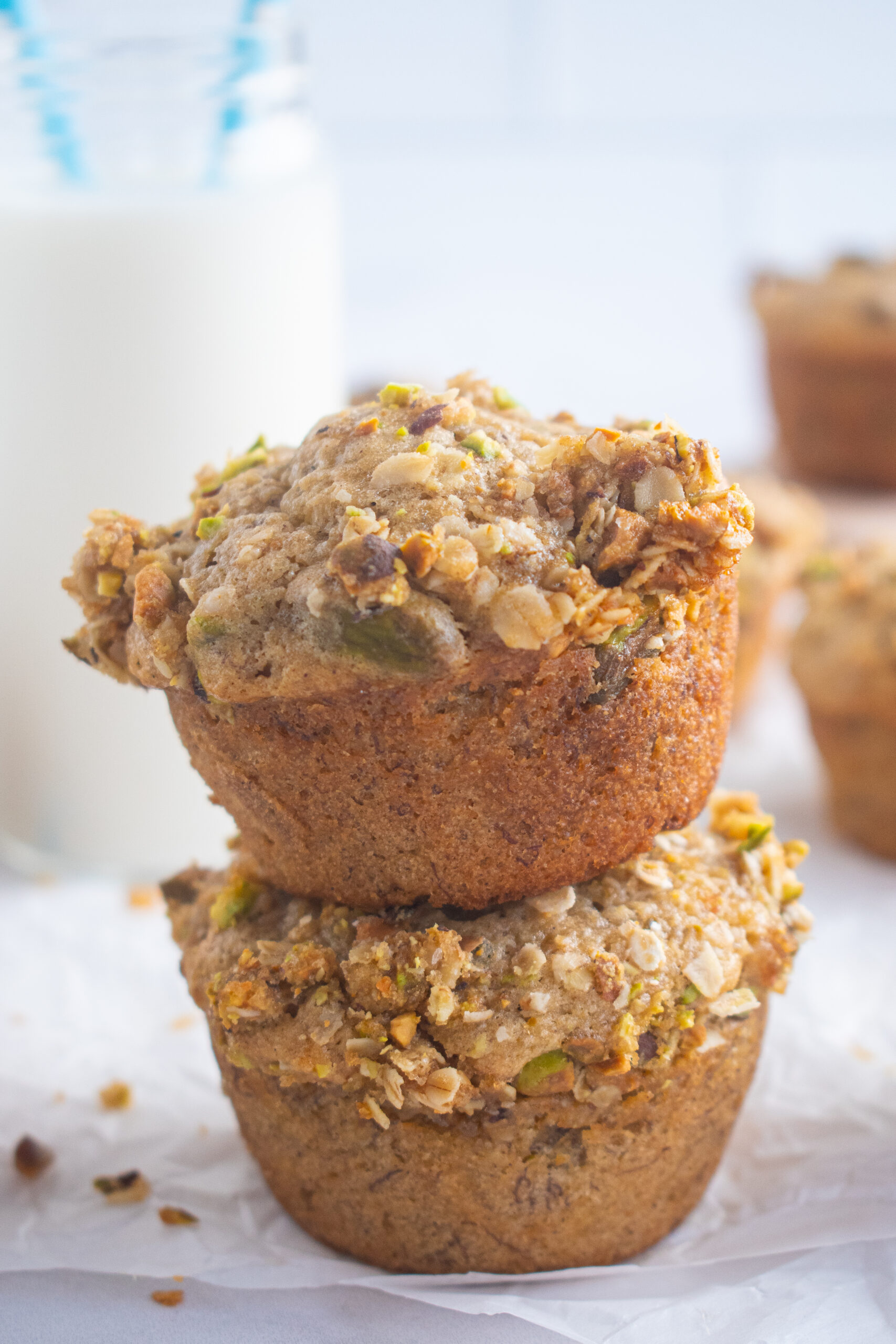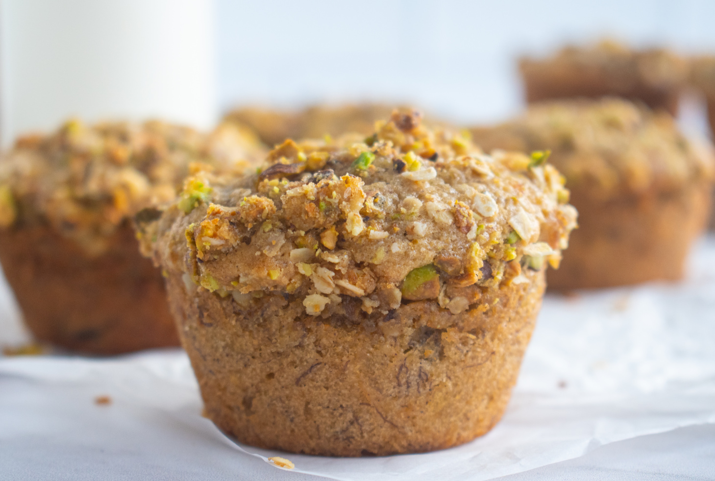 Moist and flavorful Pistachio Banana Muffins topped with a sweet pistachio oatmeal crumble. A cozy muffin recipe perfect for breakfast or snacking. I have been using pistachios in recipes lately. I am so happy that I tried this recipe!