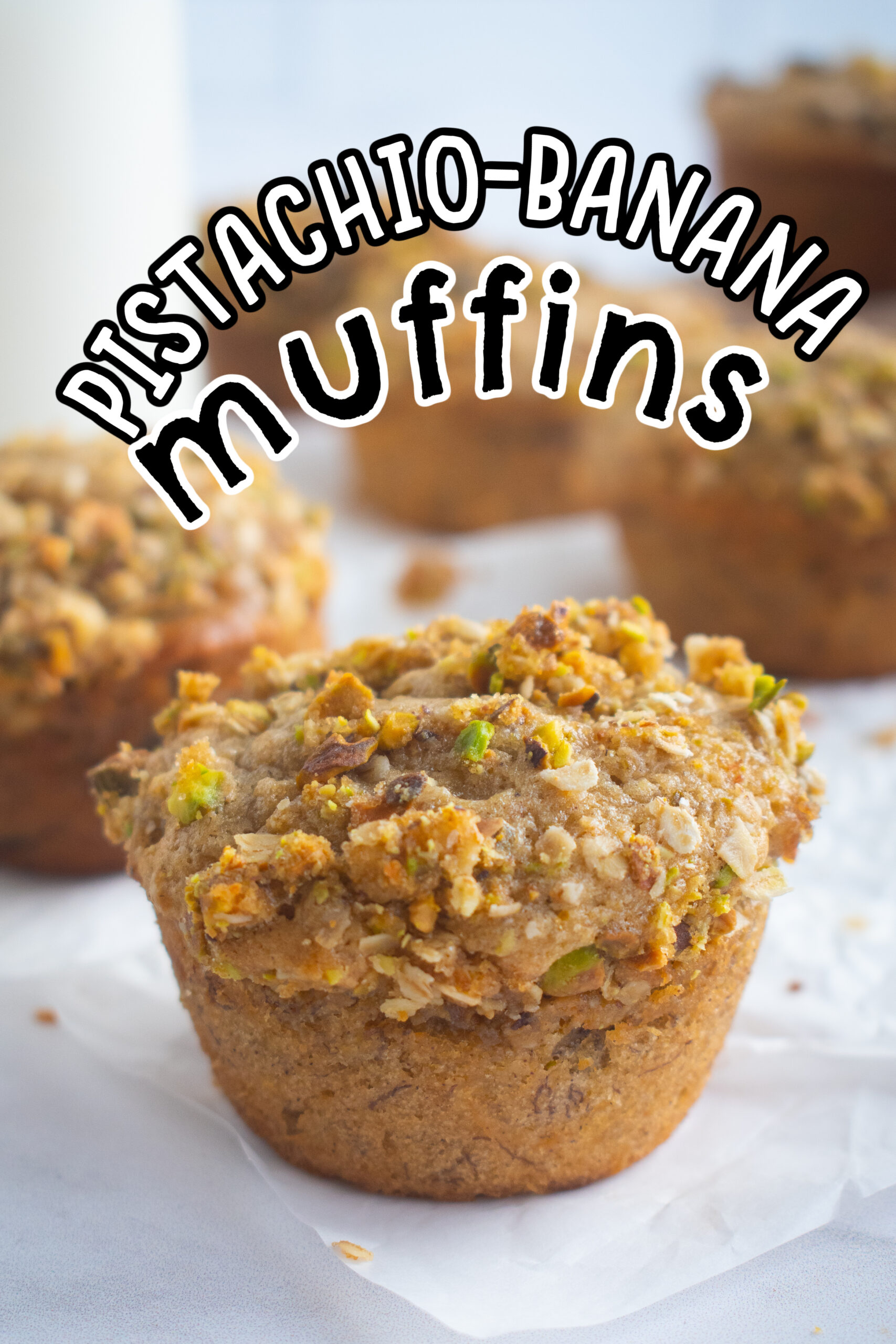 These Pistachio Banana Muffins with Pistachio Oatmeal Crumble are soft, nutty, and full of banana flavor. A bakery-style muffin that feels special but is easy enough to make any day of the week.