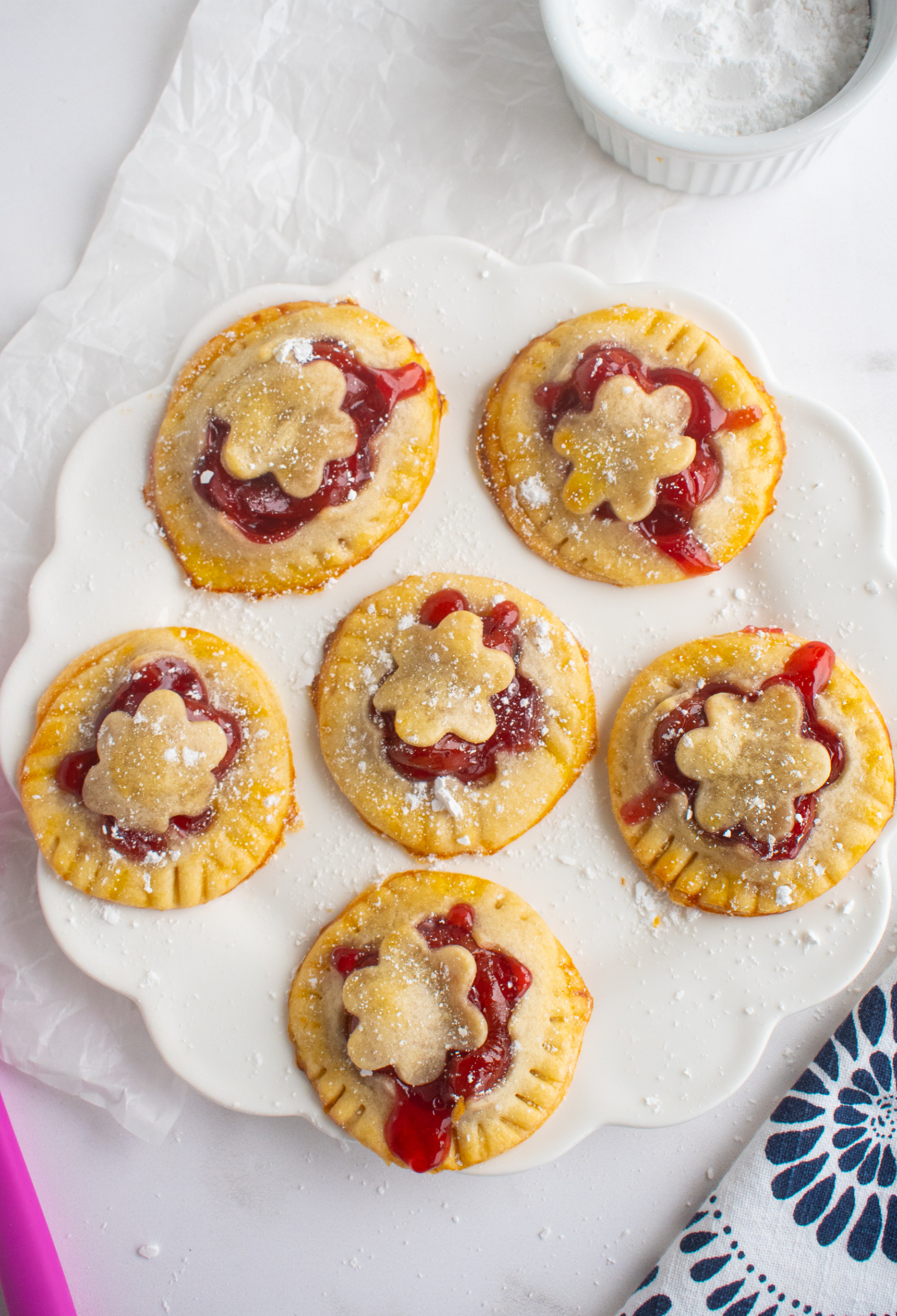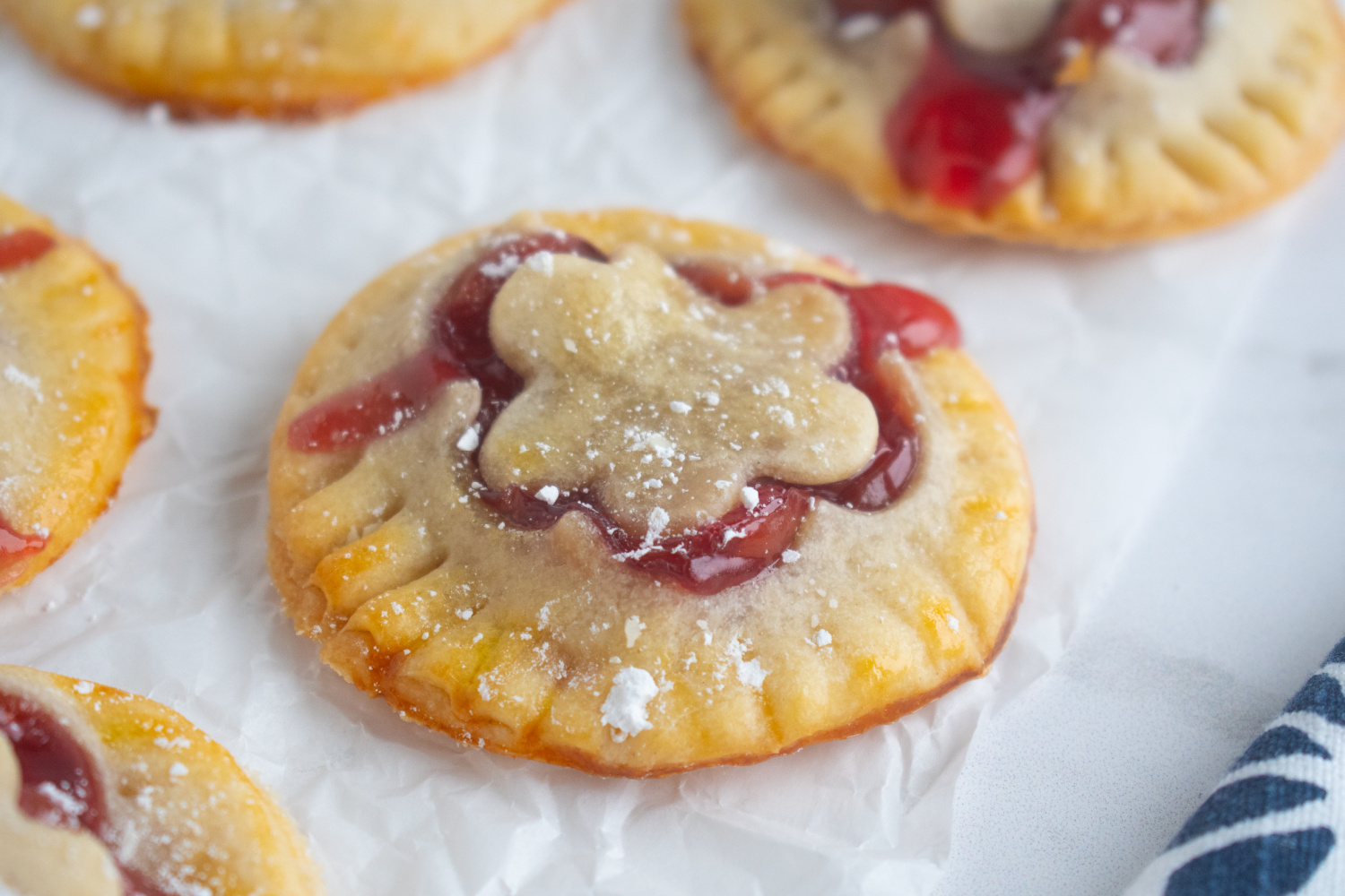 Many of my cherry desserts are inspired by my love for Door County, Wisconsin. I grew up enjoying the bright, tart, freshly picked cherries there. In so many recipes, that flavor always brings back memories. These little pies remind me of those bakery case treats you can enjoy on vacation, but with the bonus of using up every last piece of crust in your own kitchen.