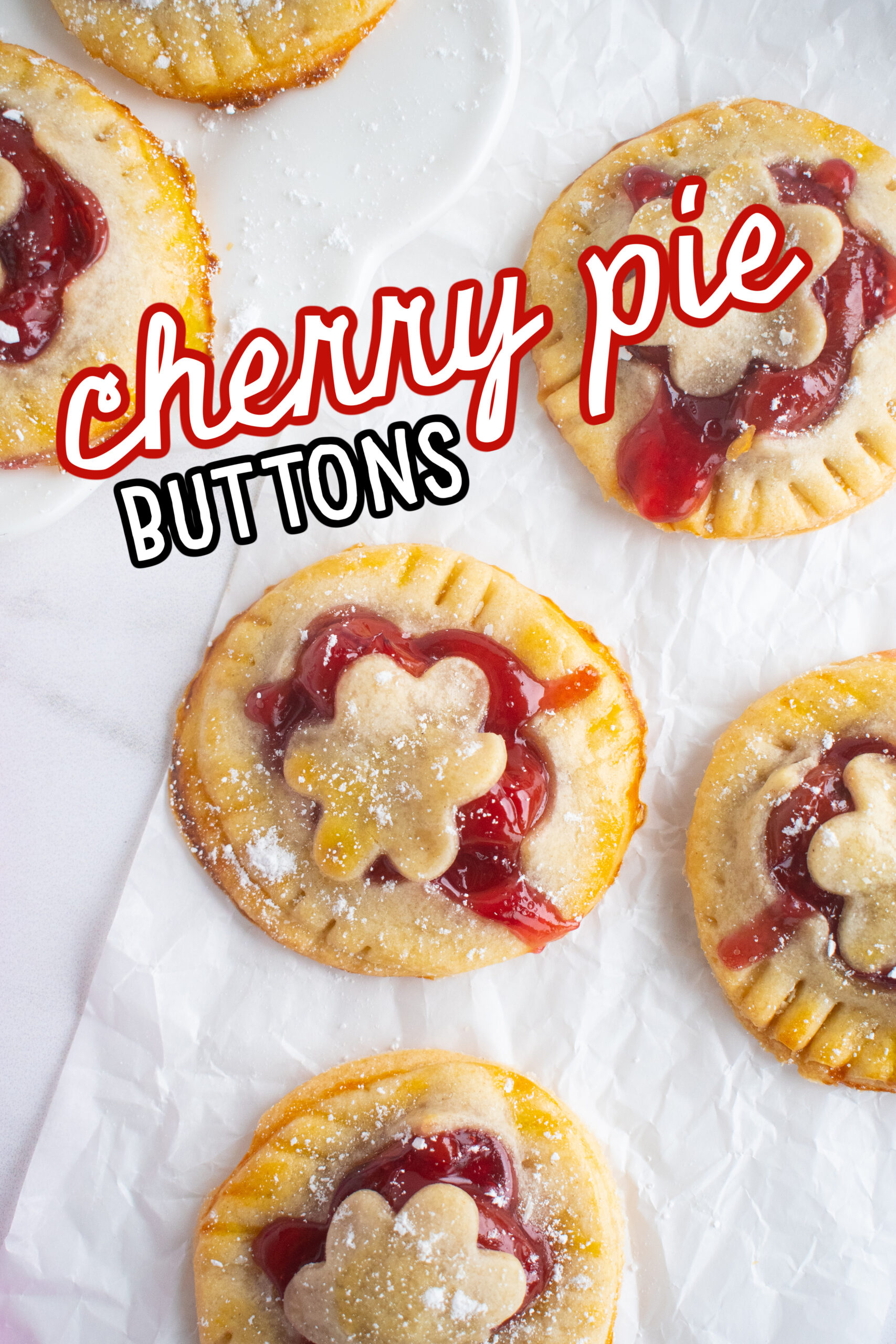 These Cherry Pie Buttons use leftover pie crust and cherry pie filling to create a tiny, sweet dessert that is perfect for Christmas and the holidays.