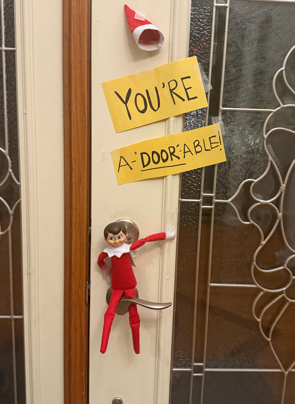 I must admit that our Elf has been a lazy Elf for the past few years. Nobody wants to come up with an elf idea every single night. Many nights, we stick him on a high surface, like the refrigerator, on top of the sink, or on the wall over the couch. But I do like to put in effort every third day or so. There are many fun setups you can create, even with minimal effort.