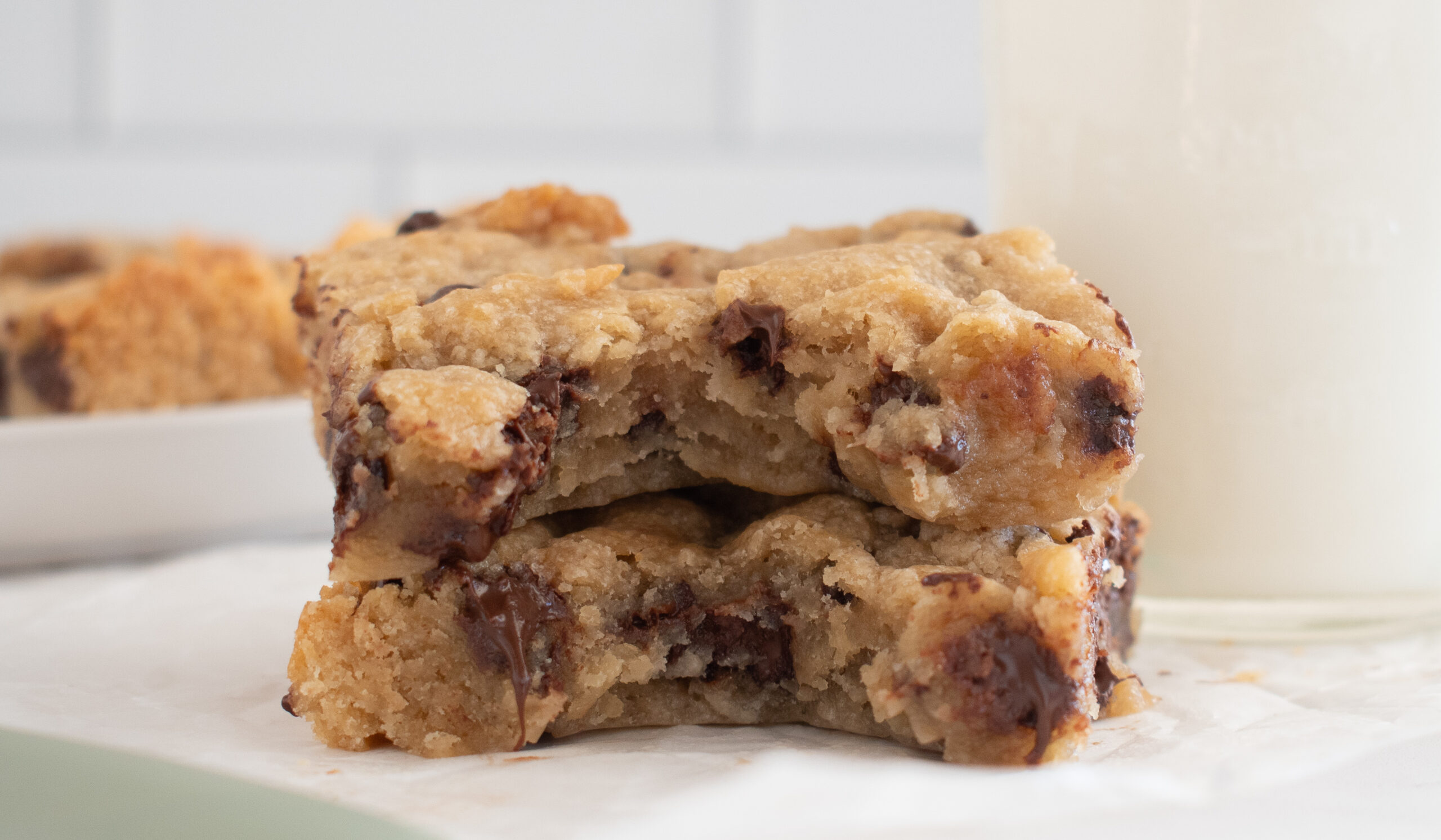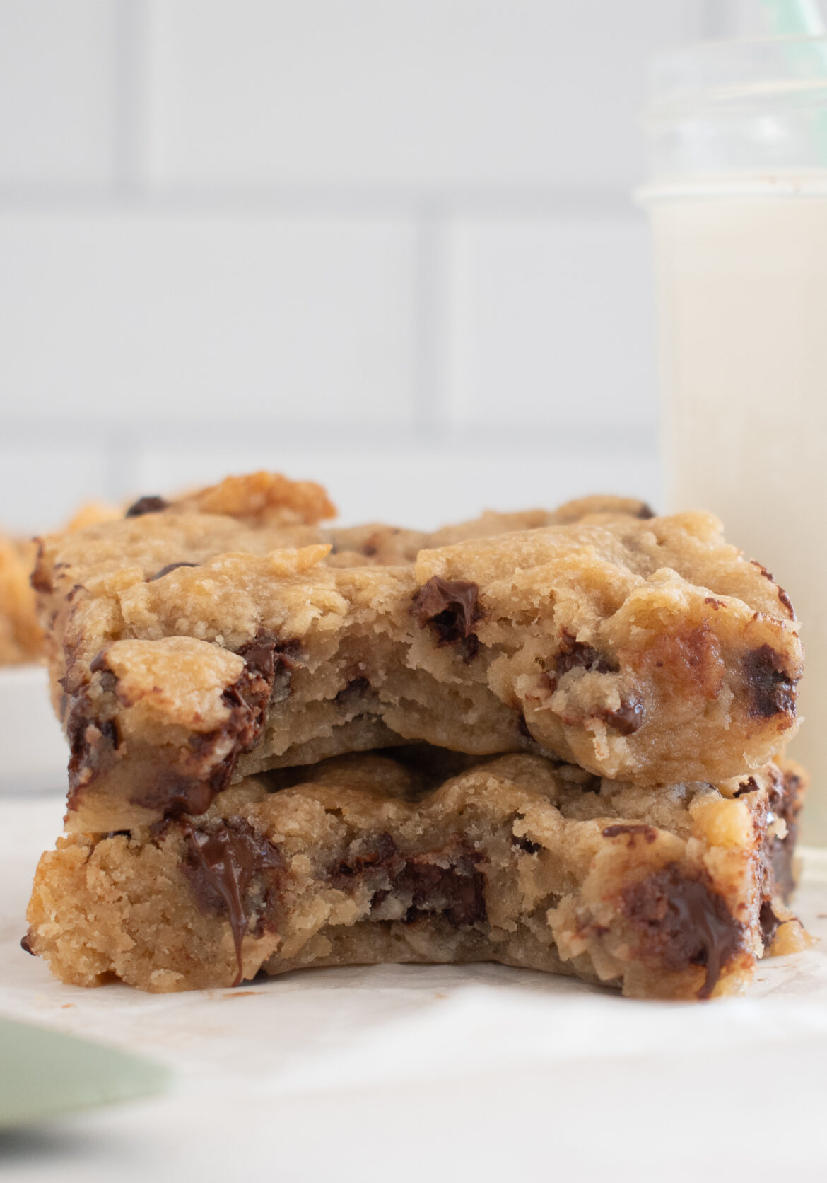 This recipe uses unsweetened applesauce instead of an egg, which keeps the batter moist and tender. Applesauce works especially well in pan-baked cookie recipes because it holds moisture without making the bars dense. If you have made my applesauce chocolate chip cookies before, you already know how well this swap works. It is an easy recipe solution when you are out of eggs or simply want to try something different.