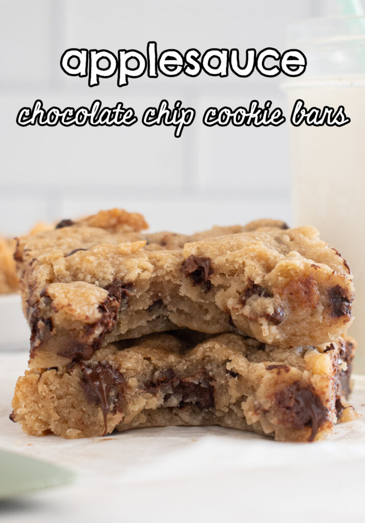 These applesauce chocolate chip cookie bars are soft, chewy, and baked in an 8x8 pan with no egg needed. An easy recipe made with pantry staples and self-rising flour, delivering classic chocolate chip cookie flavor.