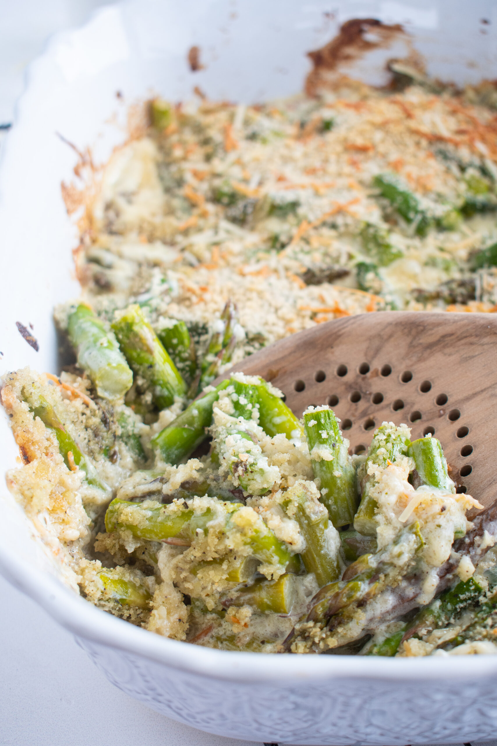 This recipe uses simple ingredients that come together to create a rich and flavorful asparagus bake.