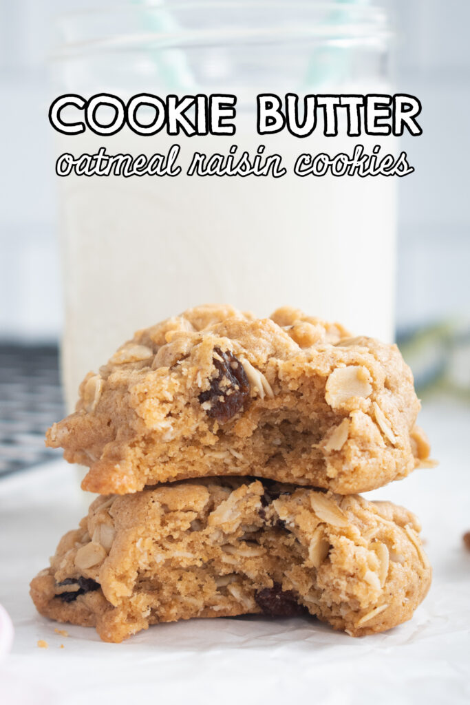 These cookie butter oatmeal raisin cookies are soft, chewy, and SO good. The cookie butter adds the best flavor twist to a classic favorite.